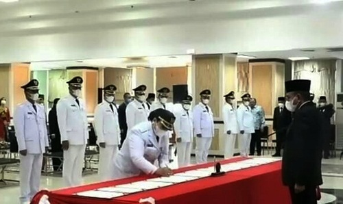 Ada pun delapan kepala daerah yang dilantik Gubsu Edy Rahmayadi, Bupati Karo Cory Sriwaty Sebayang dan Wakil Bupati Karo Theopilus Ginting, Bupati Simalungun Radiapoh Hasiholan Sinaga dan Wakil Bupati Simalungun Zonny Waldi, Bupati Nias Selatan Hilarius Duha dan Wakil Bupati Nias Selatan Firman Giawa, Bupati Samosir Vandiko Timotius Gultom dan Wakil Bupati Samosir Martua Sitanggang, Bupati Nias Barat Khenoki Waruwu dan Wakil Bupati Nias Barat Era-era Hia, Bupati Nias Utara Amizaro Waruwu dan Wakil Bupati Nias Utara Yusman Zega.