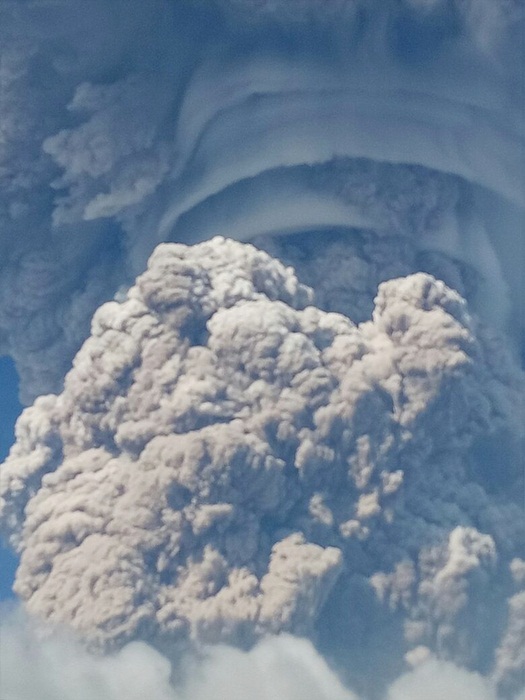 Penampakan gumpalan abu vulkanik dari letusan besar Gunung Sinabung, Senin 19 Februari 2018. [Foto Bay|Rienews.com]