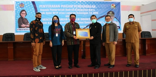 RIENEWS.COM – Pemerintah Kabupaten Karo menerima piagam penghargaan dari Menteri Keuangan Sri Mulyani, atas keberhasilan  Pemkab Karo, Sumatera Utara, menyusun dan menyajikan laporan keuangan Tahun Anggaran (APBD) 2019, meraih capaian opini Wajar Tanpa Pengecualian (WTP).