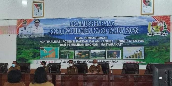 Pra Musrenbang merupakan tahap awal pelaksanaan Musrenbang Kabupaten yang direncanakan pada tanggal 17 Maret 2022, Pra Musrenbang dilaksanakan dalam rangka penyusunan Rencana Kerja Pemerintah Daerah Kabupaten Karo Tahun 2023.